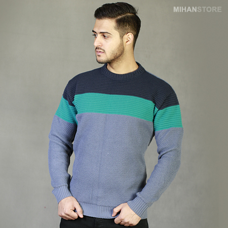 این بافت زیبا با نوار های سه رنگ بر روی آن جلوه ای ویژه داشته و مورد پسند جوانان خوش پوش و جویای مد قرار گرفته است و به صورت فری سایز عرضه شده است. الگوی بافت در دو نوار بالایی به صورت راه راه و در قسمت پایین بافت به صورت لوزی می باشد که نمای بسیار زیبایی به این بافت خاص بخشیده است.