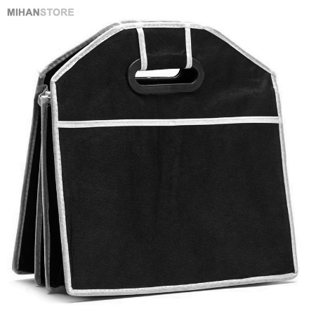 کیف نظم دهنده اتومبیل یکی از کاربردی ترین لوازم خودرو می باشد که امکان ساماندهی صندوق عقب خودرو را با سرعت بالایی فراهم می کند و از بهم ریختن لوازم موجود در صندوق عقب خودرو جلوگیری می کند. این محصول دارای 3 جیب بزرگ می باشد که برای لوازم بزرگ و خرید ها می باشد و دو جیب کوچک نیز در دو طرف آن تعبیه شده است که برای لوازم و ابزارهای کوچک مناسب است. دو طرف کیف نظم دهنده دو دسته محکم تعبیه شده است که به شما امکان بلند کردن و حمل کیف را می دهد. جنس بدنه محصول از برزنت نرم درجه یک دور دوزی شده می باشد به رنگ مشکی می باشد. این محصول کاملا تاشو بوده و در صورت عدم نیاز می توانید آن را جمع کنید که ضخامت بسیار کمی پیدا می کند.