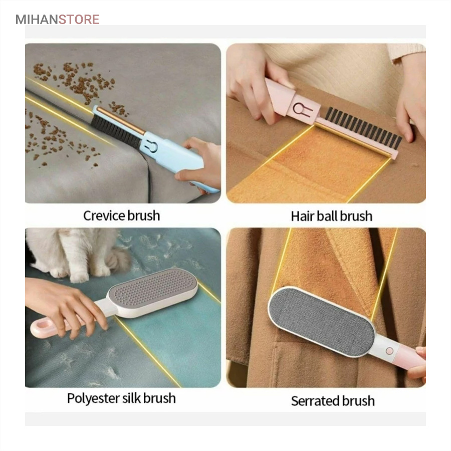 Hair Ball Brush (برس مو و پرز): مخصوص جمع‌آوری موهای حیوانات و پرزهای روی فرش، مبل و لباس است و سطح را کاملاً صاف و تمیز می‌کند.