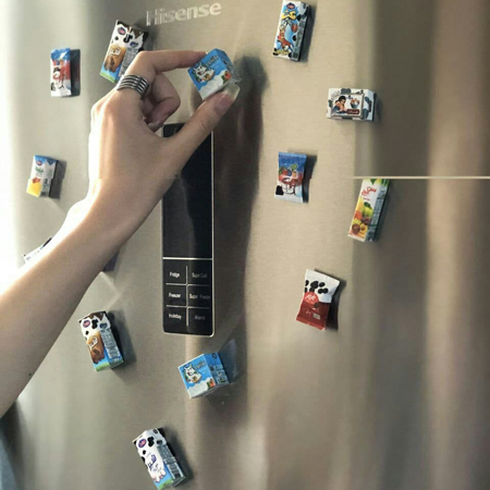 محصول جدیدی که به شما معرفی می کنیم مگنتهایی است که دقیقا مانند اجناس سوپر مارکتی هستند که همه روزه خریداری میکنیم. تولید کننده خوش سلیقه این محصول تمام تلاش خود را بکار بسته تا مگنتها دقیقا مشابه اجناس اصلی باشند. این مگنتهای مینیاتوری از کیفیت قابل قبولی برخوردار هستند و از جنس مقوای لمینت شده مقاوم در برابر آب تولید شده است و از آهنربای مخفی (داخل محصول) به کار رفته است. اندازه حدودی مگنتها 2 تا 4 سانتیمتر میباشد و هر بسته شامل 6 عدد مگنت یخچالی با طرح های متفاوت می باشد. دقت تولید این محصول فوق العاده می باشد و دقیقا پشت و روی مگنتها دقیقا مانند اجناس اصلی هستند.