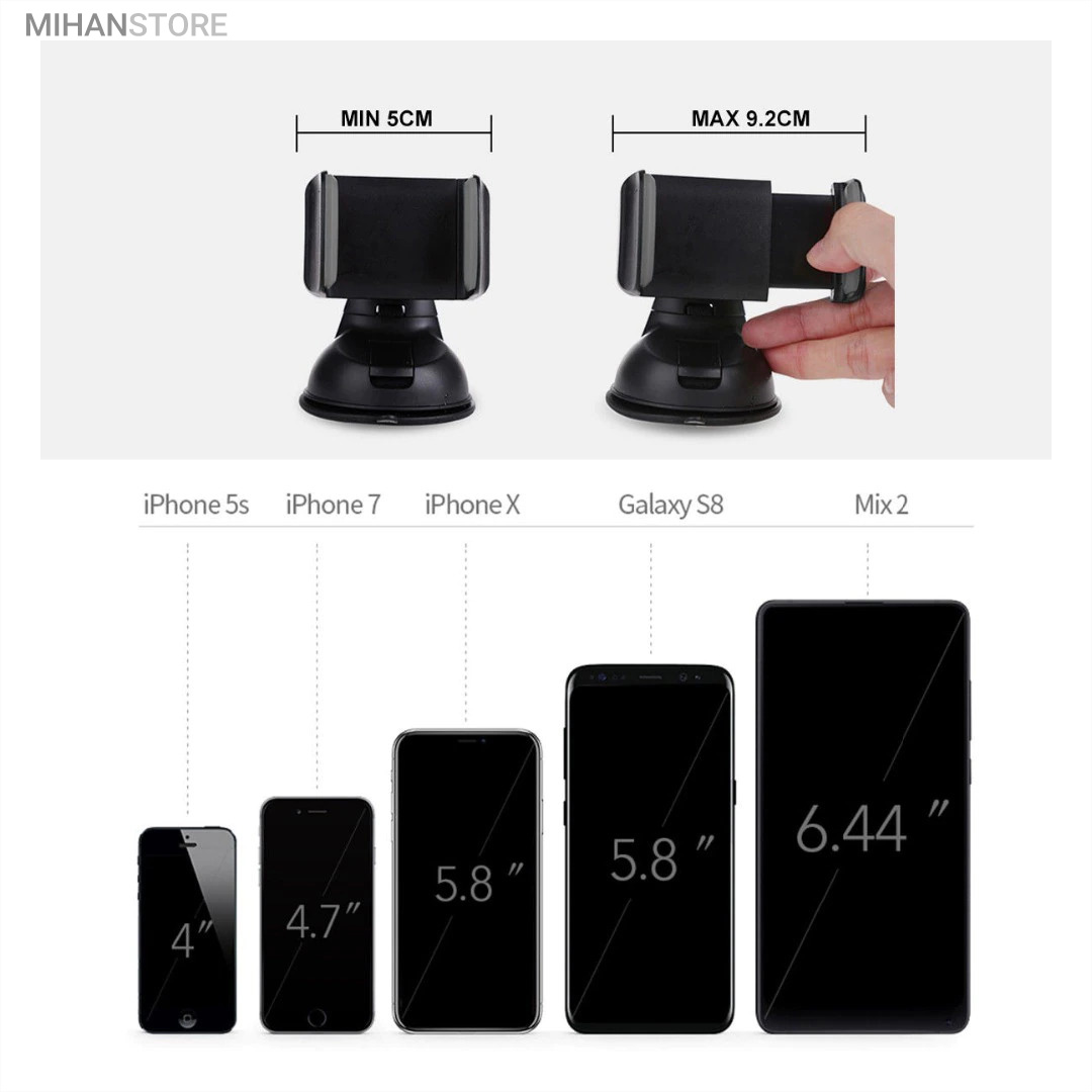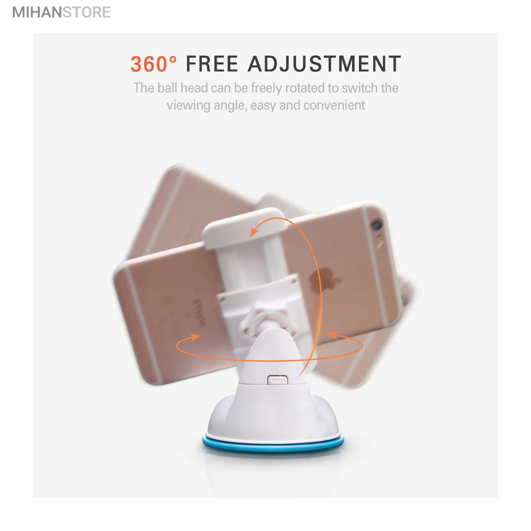 پایه نگهدارنده گوشی موبایل با بادکش های لاستیکی بسیار قوی قابلیت چسبندگی برروی هر سطحی از جمله داشبورد خودرو، شیشه جلویی اتومبیل، میز کار و غیره را خواهد داشت. جنس بدنه این هولدر از پلاستیک بوده و در قسمت گیرهای از پوشش سیلیکون برای جلوگیری از لیز خوردن گوشی موبایل استفاده شده است. با استفاده از هولدر موبایل ذکر شده امکان چرخش 360 درجه و یا قرار گرفتن در حالت عمودی و افقی امکان پذیر میباشد، که در هنگام رانندگی آسودگی خاطر بالایی برای راننده فراهم میآورد. این پایه نگهدارنده گوشی موبایل برای گوشی های هوشمند با سایز حداکثر 6 اینج مناسب میباشد. پایه سیلیکونی که به کمک بادکشی بودن به سطوح وصل میشود جوری که طراحی شده که شما میتوانید بارها پایه را جدا کنید و جابجا کنید و مثل روز اول با همان مقاومت به سطح وصل شود و اگر در مجاورت گردو خاک چسبندگی سیلیکون کم شد فقط کافیست پایه را بشورید و استفاده کنید.