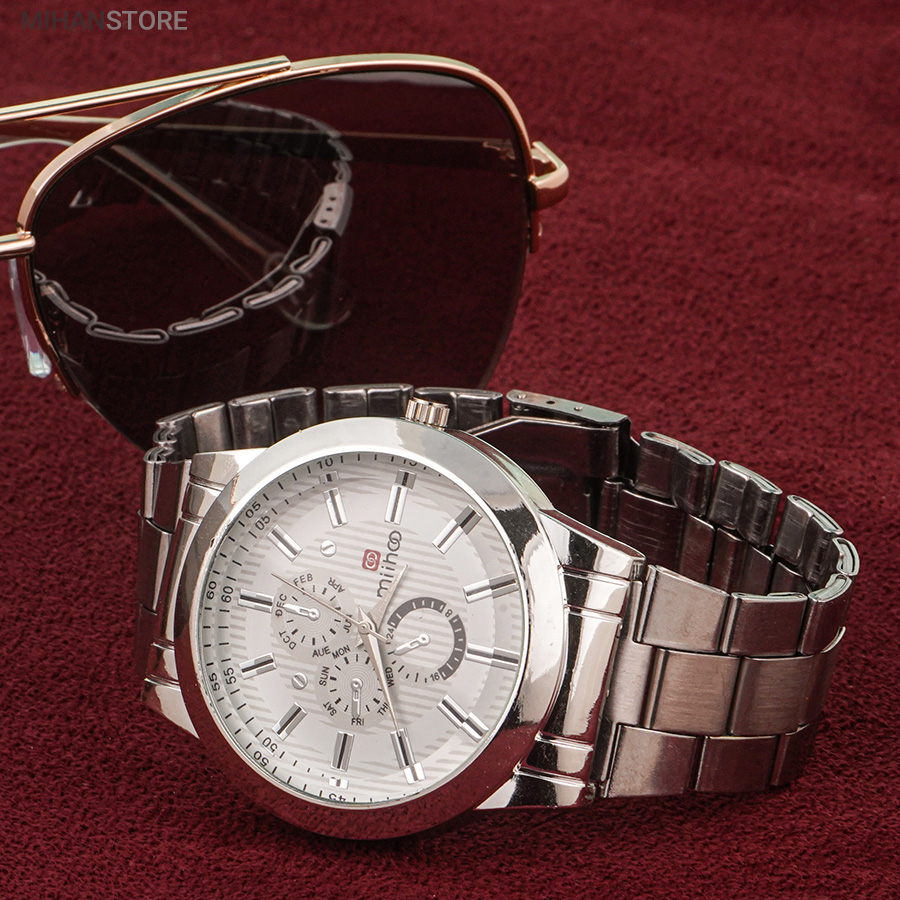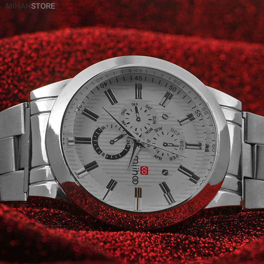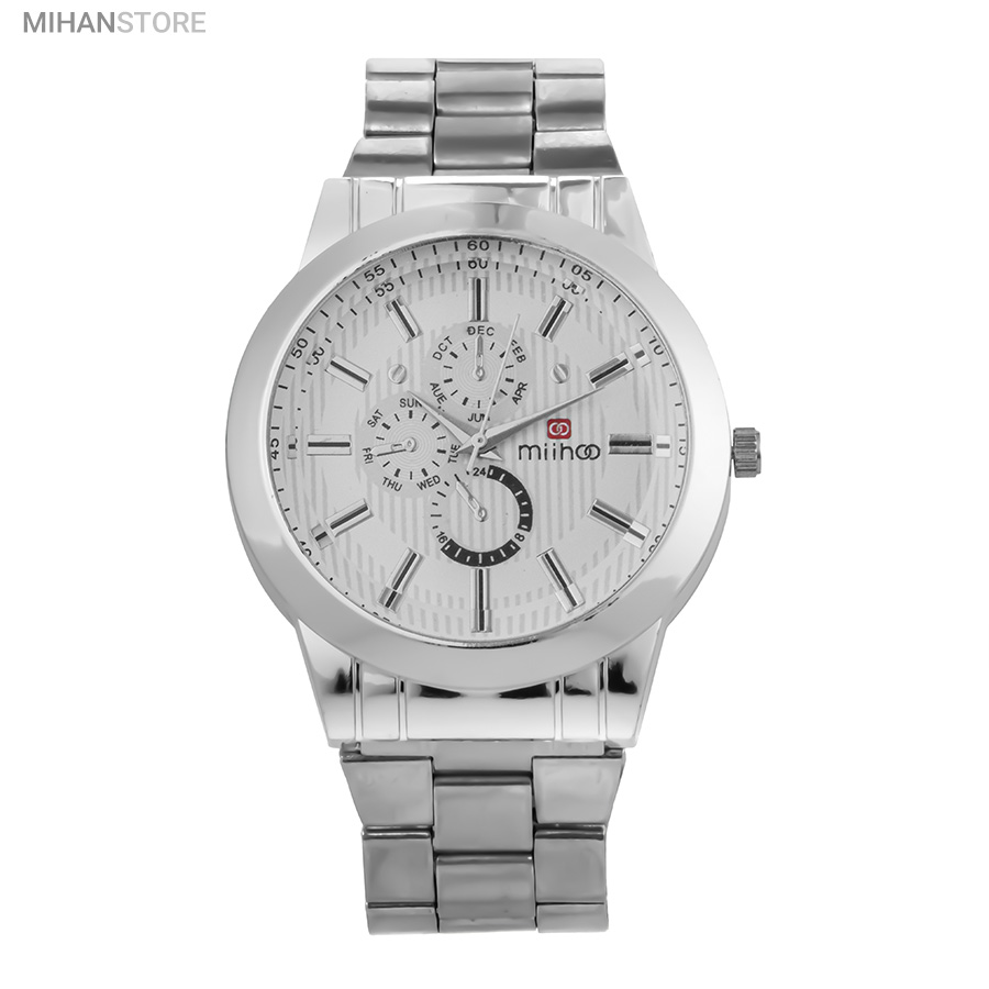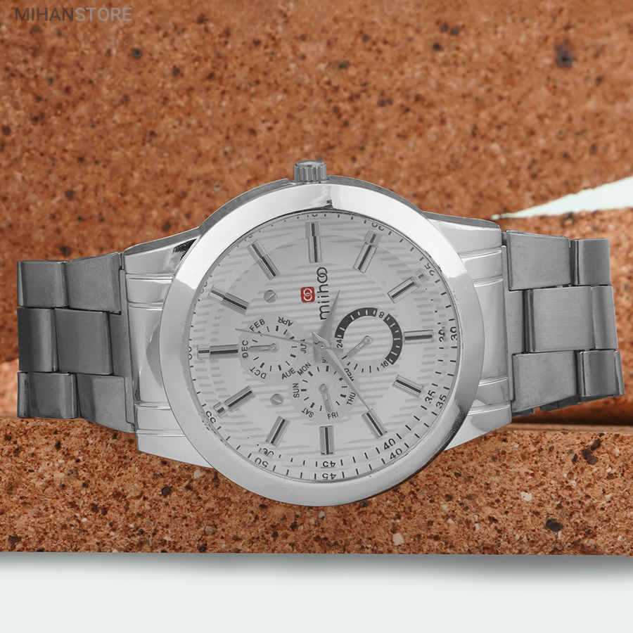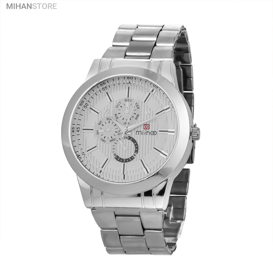 ساعت مچی مردانه MIHOO TIGER یک ساعت شیک فلزی با بند بافت فلزی با رنگ نقره ای در رده ساعت کلاسیک اسپرت می باشد و تکمیل کننده استایل خاص شما خواهد بود. این ساعت طرح 3 موتوره می باشد و بسیار خوش ساخت و با کیفیت تولید شده است، این محصول همراه با یک جعبه شکیل ارسال خواهد شد.