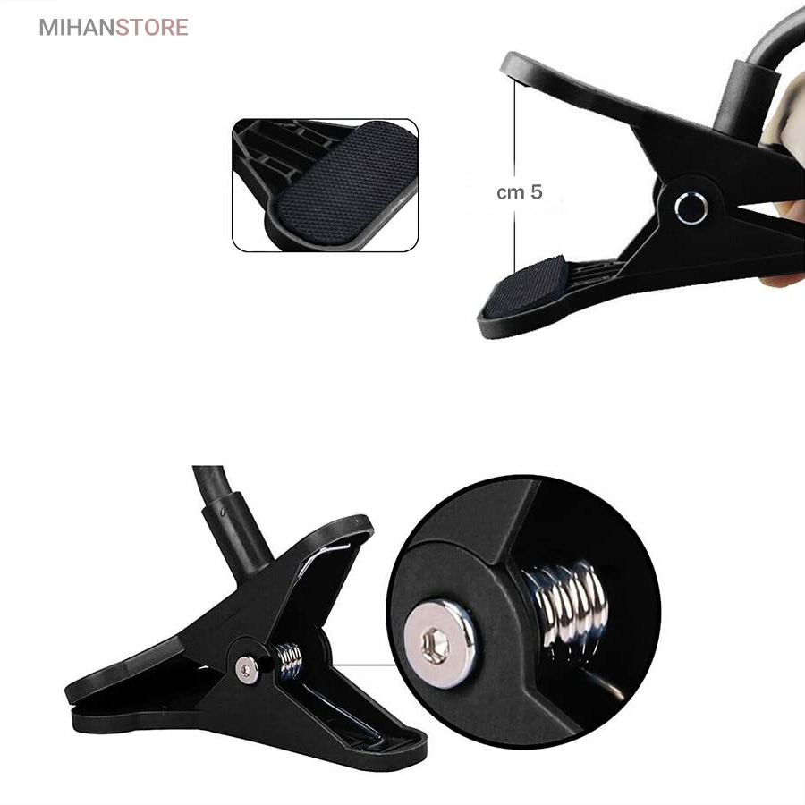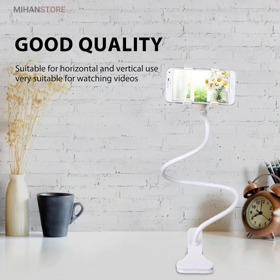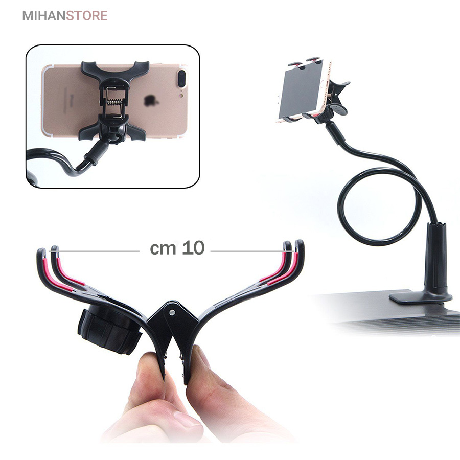 با این وسیله دیگر نیازی نیست موبایل خود را در دست گرفته و با آن کار کنید، کافیست موبایل را بر روی آن نصب کرده، و در کنار میز کار، یا تخت خواب یا خودروی خود در محل مناسب گیره آن را وصل کرده و کابل آن را در زاویه دلخواه تنظیم نموده و از آن استفاده نمایید. دارای گیره بسیار مقاوم که میتوانید آن را در محل دلخواه نصب نمایید و سپس در هر زاویه ای که خواستید استند را شکل دهید. با هر نوع پیچ و خم و حالتی که خود شما دوست دارید. این محصول برای تمامی گوشی های موبایل قابل استفاده می باشد و سایز نگهدارنده موبایل آن قابل تنظیم است.