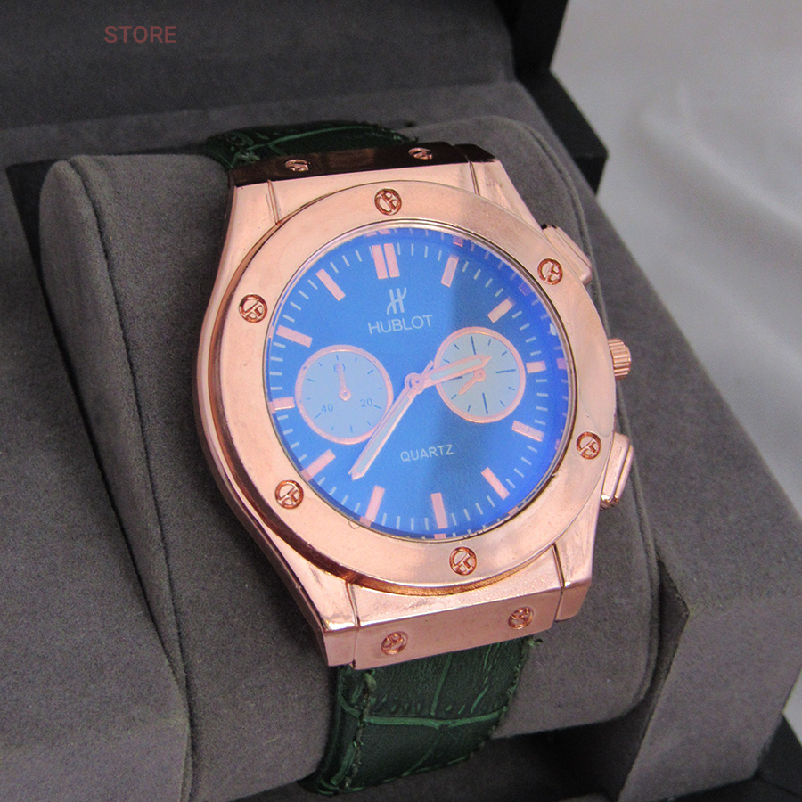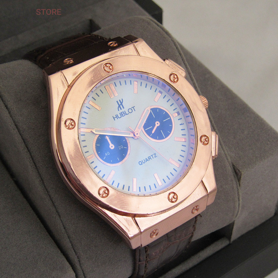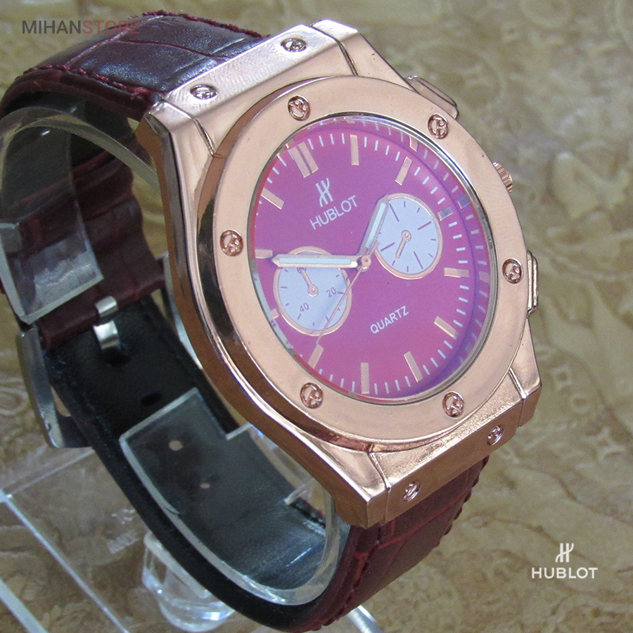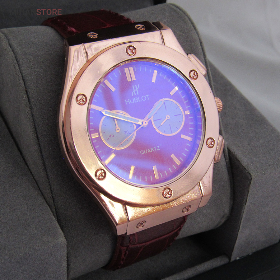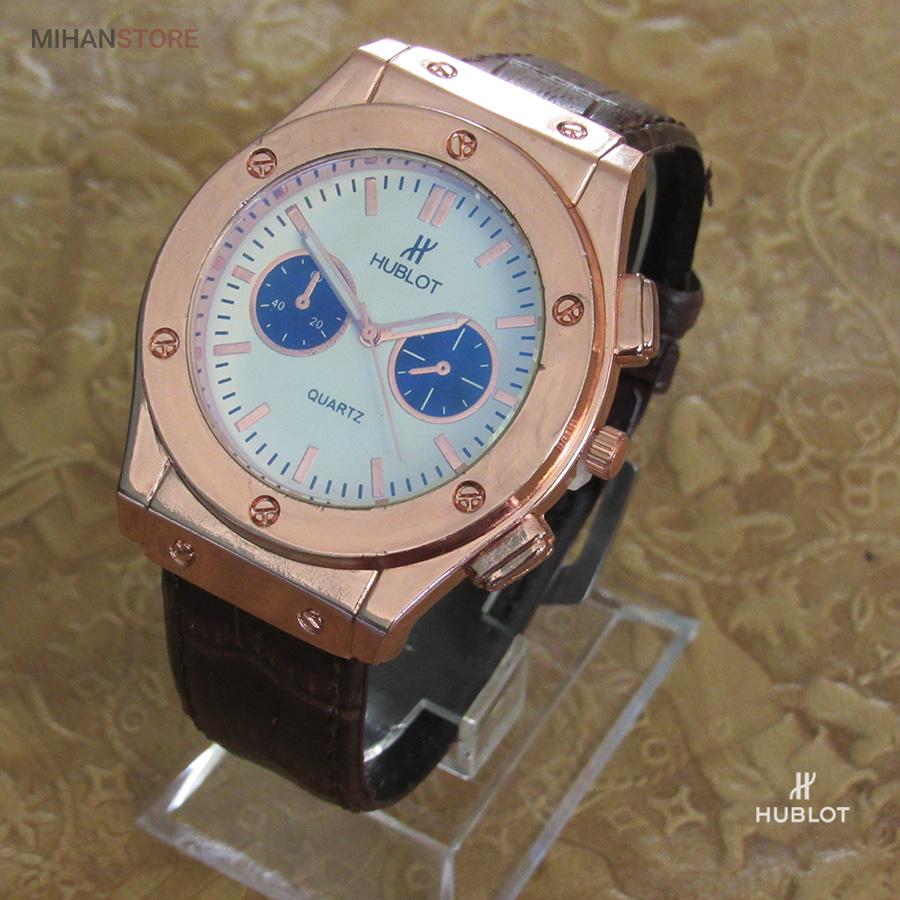 ساعت مچی هابلوت یکی از جدیدترین مدل های عرضه شده کمپانی معتبر Hublot می باشد. این ساعت دارای بند طرح چرم بسیار با کیفیت و صفحه شیشه ای می باشد که در رنگ بندی متنوع عرضه شده است که هنگام تکمیل سفارش در سبد خرید رنگبندی آن قابل انتخاب است. ساعتی که پیش روی شماست طراحی شده از روی این مدل بوده اما طراحی آن به گونه ای انجام شده است که از لحاظ ظاهری تفاوت چندانی با ساعت اصلی نداشته و کیفیت آن هم نسبت به قیمت آن ارزنده می باشد.