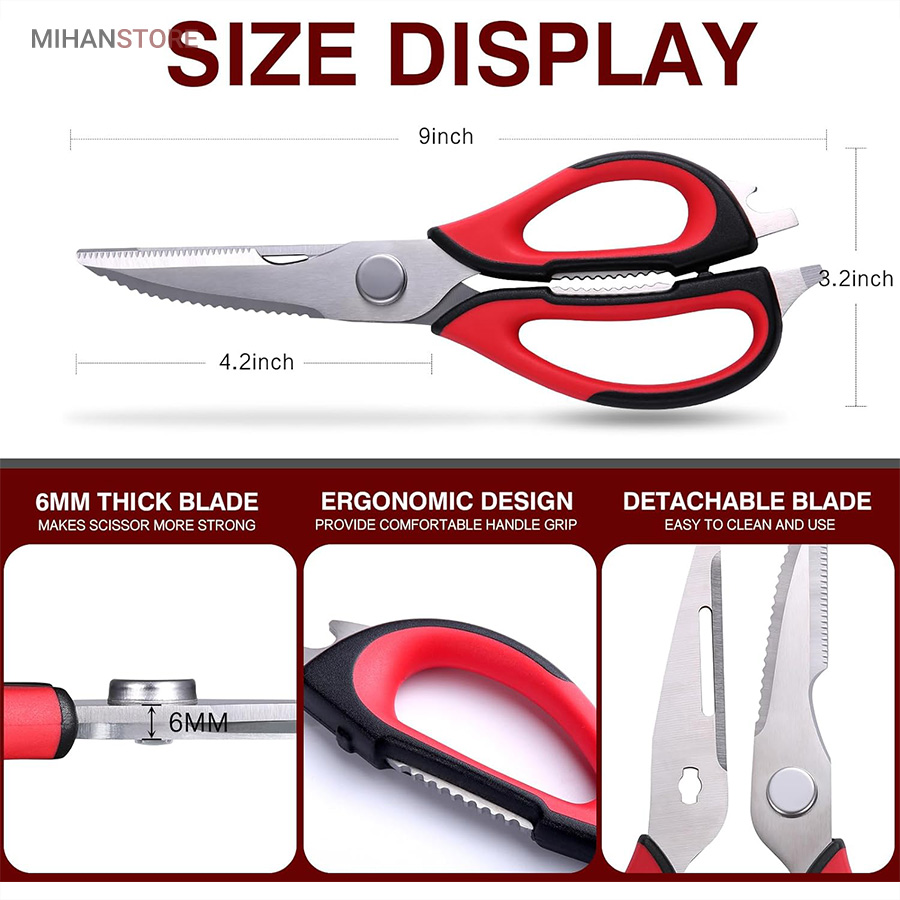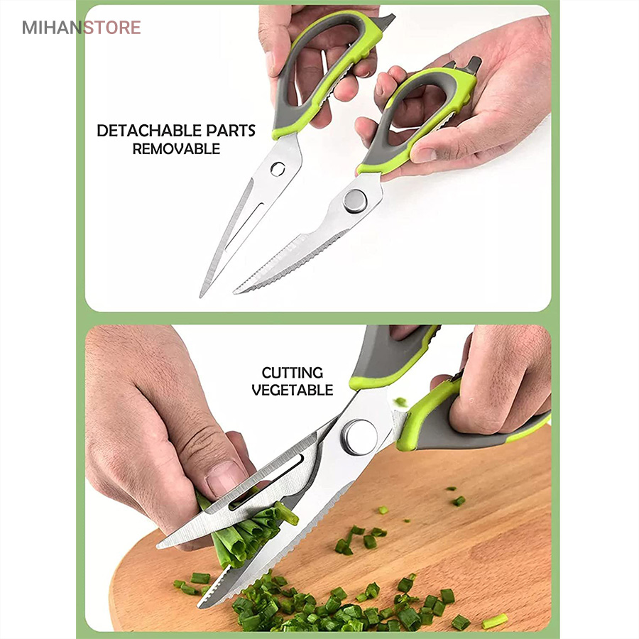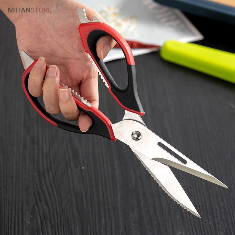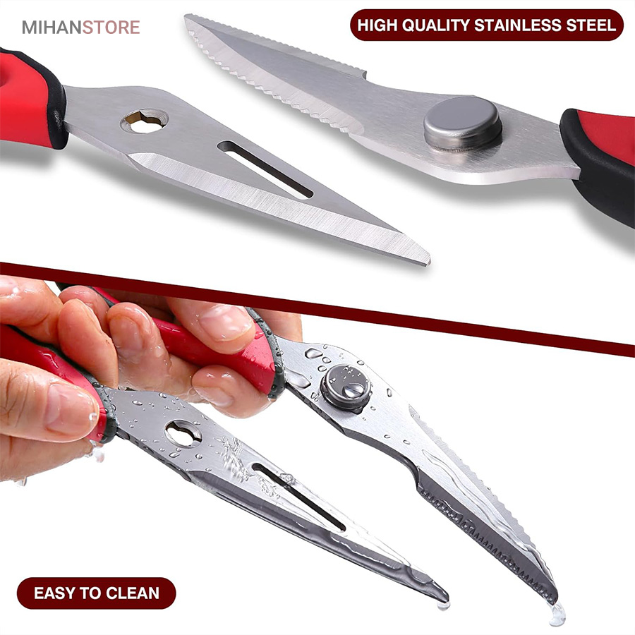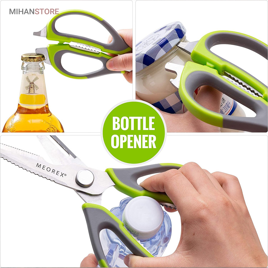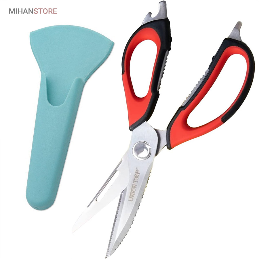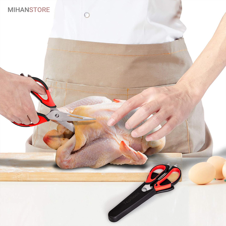 هم قیچی، هم بازکن، هم کابل کش و هم چاقو! این قیچی جادویی 8 کاره باورنکردنی در هر زمینه ای مفید خواهد بود. محصولی کاملاً جدید که باید در کار آشپزخانه خود داشته باشید و کار شما را آسانتر میکند و نمیتوانید نزدیک آن باشید. در آشپزخانه می توانیم هنگام سرو مرغ، سبزیجات را خرد کنیم یا به راحتی استخوان ها را برش دهیم. می توانید از آن به عنوان کرکر فندقی یا گردو استفاده کنید. به راحتی می توانید درب بطری های خود را باز کنید. به طور خلاصه، به لطف قیچی جادویی 8 کاره، کاری که در زندگی روزمره انجام می دهید اکنون کاربردی تر شده است. قابل شستشو در ماشین ظرفشویی می باشد.