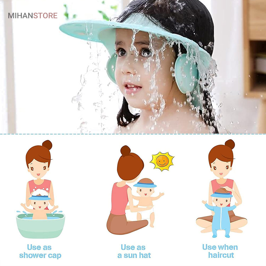 حمام کردن کودکان در حالی که توانائی جلوگیری از ورود آب و مواد شوینده به دهان خود را ندارند مشکل خواهد بود. ضمن اینکه ریزش آب یا مواد شوینده باعث آزار چشم های آنان می گردد و لذت حمام کردن را از آنها می گیرد. محصول کلاه حمام ارائه شده دارای جنس فومی بسیار نرم و سبک است که قابلیت تنظیم برای کاسه سر فرزندان دلبند شما را دارد و راحت بر سر آنها قرار می گیرد، ضمنا با داشتن دو پوشش جانبی که روی گوش کودکان قرار می گیرد باعث می شود تا آب وارد گوش آنها نشود و از آسیب رسیدن به آنها جلوگیری می کند. کاربرد این محصول فقط در حمام نیست بلکه از آن به عنوان آفتاب گیر در محیط باز و یا زمانی که اصلاحی برای موی آنها انجام می دهید هم قابل استفاده است.