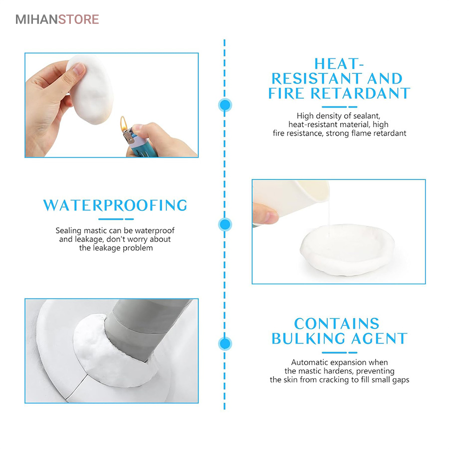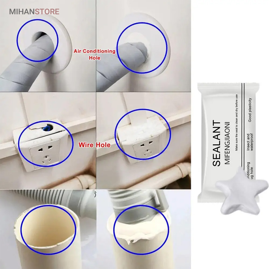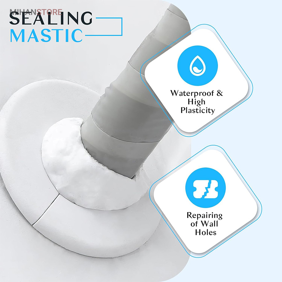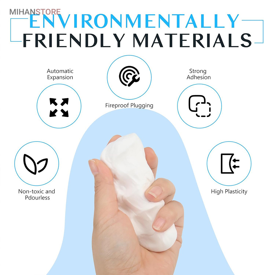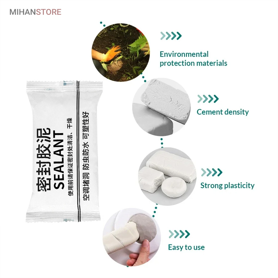 خمیر آب بندی و پر کننده منافذ از یک ماده مهندسی سازگار با محیط زیست ساخته شده است که ضد آب و مقاوم در برابر خوردگی است. در نتیجه، چگالی بالایی دارد و می تواند به طور موثری از ورود حیوانات جلوگیری کند. علاوه بر این، چسبندگی خوب آن، آن را برای وصله کردن سوراخ ها عالی می کند. خمیر آب بندی و پر کننده منافذ درزگیر ضد آب بسیار انعطاف پذیر است و می توانید آن را به هر شکلی که می خواهید مانند گرد، مربع، بلند بچرخانید. شما می توانید با توجه به اندازه واقعی سوراخ، آن را به شکل درز درآورید، استفاده از آن بسیار ساده و راحت است. بعد از استفاده و قرارگیری در محل بعد از دو ساعت شکل گیری خمیر به مرور سفت و بعد از یک روز کامل خشک و سخت می شود و کار با آن را بسیار آسان می کند. به سادگی شکاف را با درزگیر ضد آب جدید پر کنید و مهر و موم در چند ساعت سفت می شود. خمیر ساخته شده از مواد رسی دارای پلاستیک خوبی است و همراه با چسب خنک کننده است که می تواند سوراخ ها را به خوبی پر کند.استفاده از خمیر آب بندی ساده است،خمیر را با دست بر اساس مکانی که نیاز به تعمیر دارد به سطح بچسبانید.