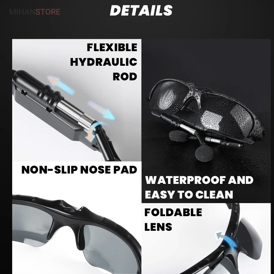 امکانات جالب و کیفیت ساخت بالا، باعث محبوبیت این محصول در بین رقبا شده است. شیشه های دودی این عینک متحرک بوده و چنان چه در حین رانندگی از آن استفاده کنید میتوانید آنها را تا زاویه 80 درجه به سمت بالا تغییر داده و در شب نیز استفاده کنید. این دستگاه از طریق بلوتوث به گوشی موبایل و یا تبلت وصل می شود و علاوه بر امکان پاسخ و مکالمه های تلفنی قابلیت پخش موزیک هم دارد. توسط کلیدهای روی دسته به راحتی می توانید به تماس ها پاسخ داده و یا موزیک های خود را مدیریت نمایید.