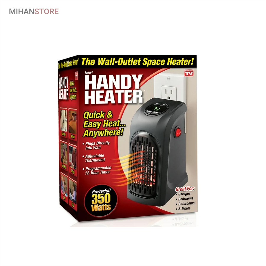 شاید برای شما هم پیش آمده باشد که در مسافرت ، محل کار ، هنگام کار در گاراژ و تعمیر ماشین و یا حتی پشت میز مطالعه سردتان شده باشد و به دنبال مکانی گرم باشید و کار کردن با لباس کلفت و دستکش برایتان دشوار باشد.با داشتن این هیتر دستی به تنها چیزی که احتیاج دارید یک پریز برق است تا به راحتی و سرعت بتوانید مکانی گرم برای خودتان ایجاد کنید. هیتر برقی فن دار Handy Heater به کوچکی و سبکی ابزاری ساده می باشد که می توانید به راحتی با خود حمل کنید و در مواقع نیاز بدون وجود کابل دست و پاگیر به سرعت مستقیم به پریز وصل کرده و از گرمای مطبوع آن که توسط صفحات سرامیکی داخل دستگاه با استفاده از مادون قرمز منتشر می شود لذت ببرید. این هیتر دارای صفحه دیجیتال نشانگر درجه و سرعت انتشار گرماست که توسط دکمه های درجه بندی روی دستگاه قابل تنظیم است. درجه بندی گرما از 16 درجه تا 32 درجه سانتی گراد می باشد که کاملا مناسب و ایمن بوده و خطر سوختگی به همراه ندارد و به راحتی پس از استفاده می توانید آن را جدا کرده و در کیفتان قرار دهید.این هیتر بسیار کمتر از بخاری ها و سایر هیترهای موجود انرژی مصرف کرده و تنها با توان 400 وات برای شما گرمای تا 32 درجه را فراهم می کند.