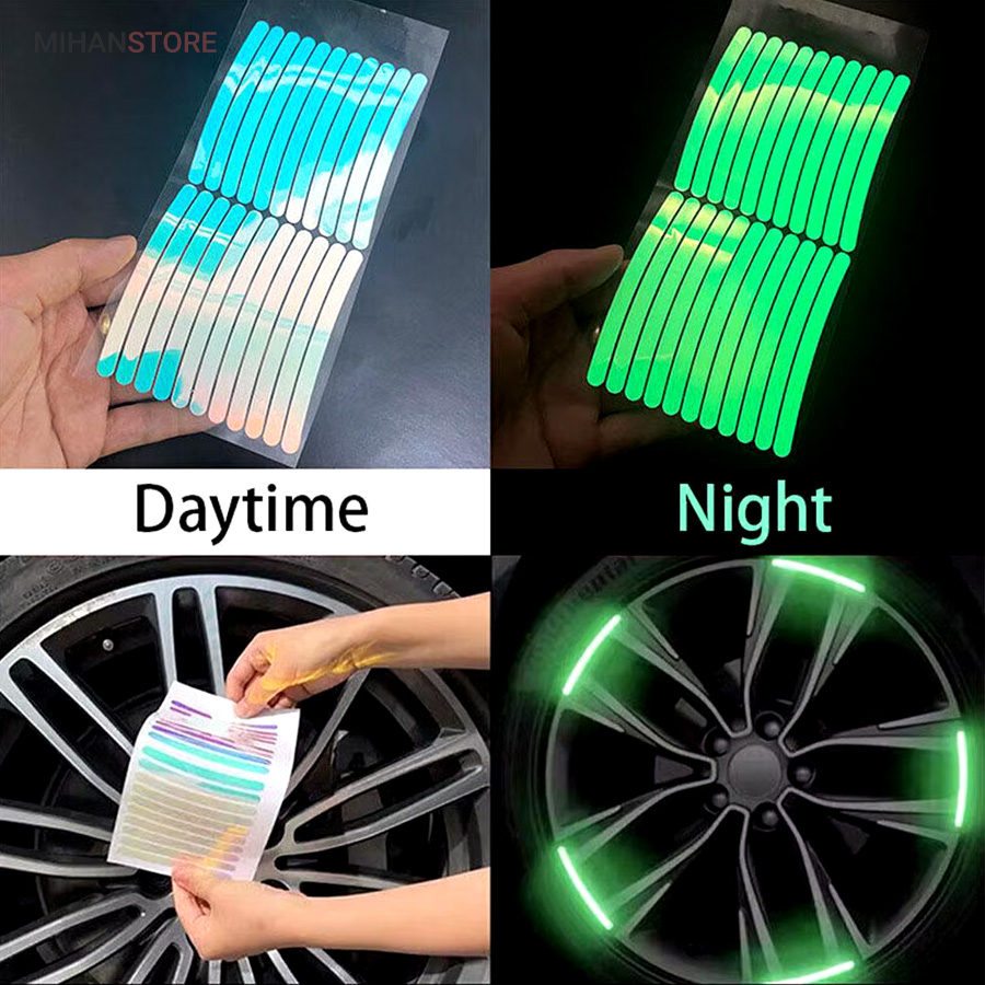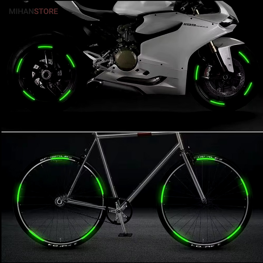 این برچسب ها رو روی رینگ و محیط تایر و لاستیک دوچرخه و یا ماشین میتونید بچسبونید ، در شب و تاریکی اثر درخشندگی شون علاوه بر زیبایی باعث هشدار و امنیت بالای شما هم میشه.  مدل شب تاب در تاریکی با بازتاب نوری که قبلا جذب کرده در تاریکی مطلق هم از خودش نور ساطع می کنه.