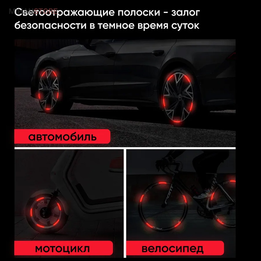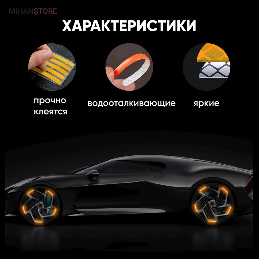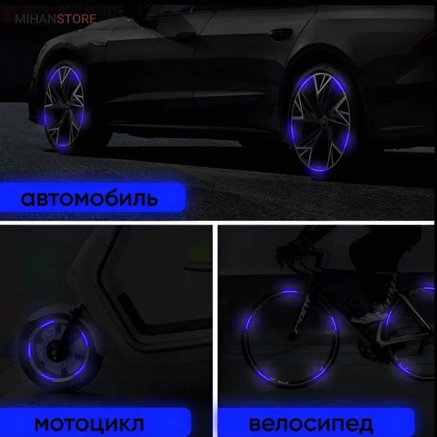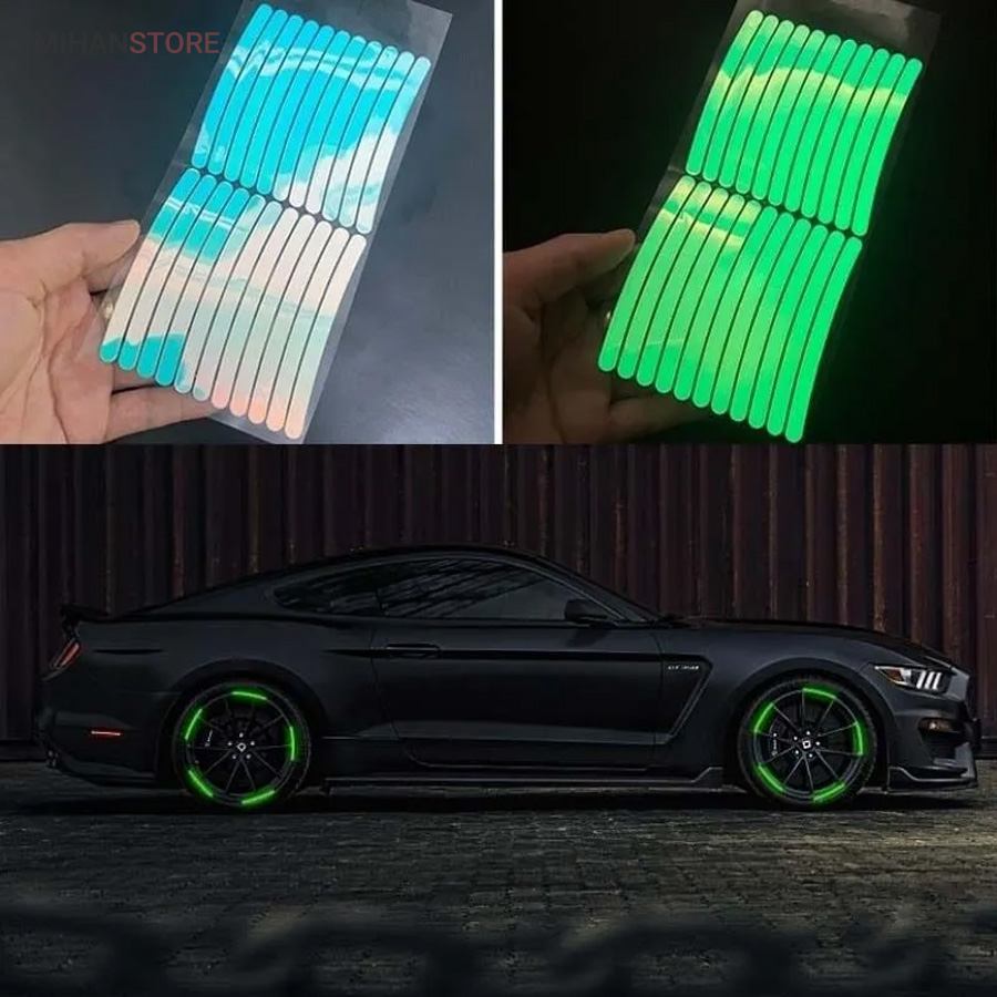 محصولی است که با طراحی منحصر به فرد خود، زیبایی و جذابیت خاصی به خودروهای شما می‌بخشد. به شکل برچسب‌ چسبانده شده، به سادگی بر روی رینگ‌های چرخ نصب می‌شوند و در شب جلوه‌ای خیره‌کننده ایجاد می‌کنند. این محصول دارای 20 عدد برچسب نواری هست که برای 4 عدد لاستیک اتومبیل، پاسخگو هست.