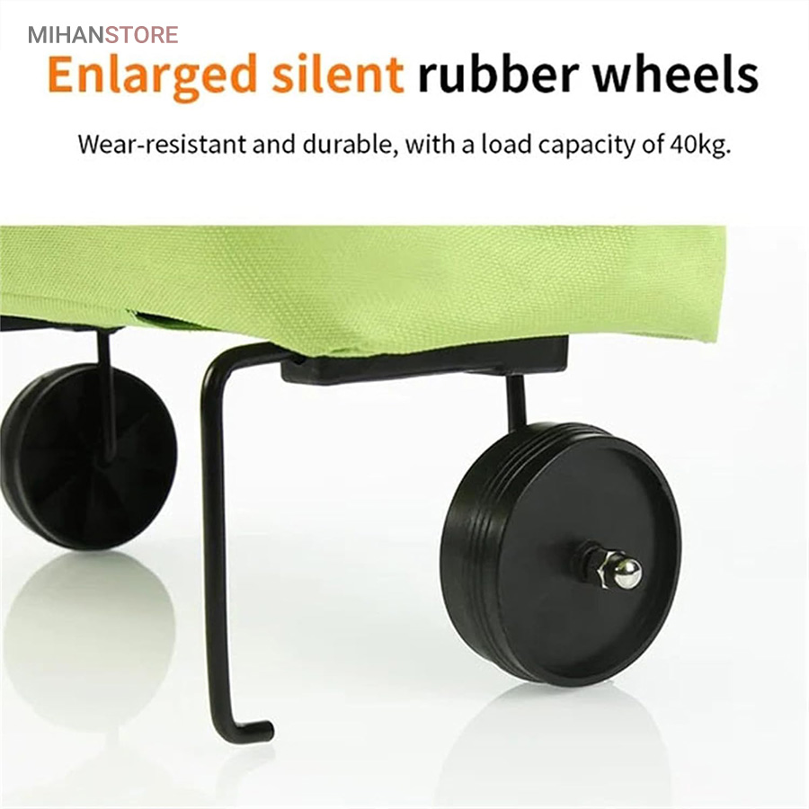 این کیف از جنس پارچه برزنتی ساخته شده و ضد آب، ضد پارگی، گرد و غبار و بادوام است که با طرح های رنگارنگ چاپ شده، شیک و مد روز است. چرخ های آن تاشو جهت حمل آسان می باشد، اندازه آن می تواند مانند یک کیف کوچک پس از تا کردن باشد. پارچه نایلونی با چگالی بالا باعث می شود ظرفیت باربری قوی داشته باشد. کیسه با ظرفیت زیاد می تواند بسیاری از چیزها را در خود جای دهد، مانند لباس، میوه، سبزیجات، کفش و غیره.