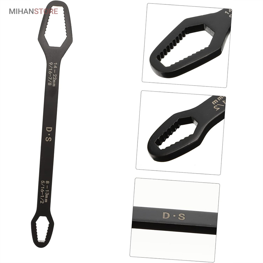 آچار دو سر رینگی همه کاره 8-22 مشکل بیشتر عاشقان ابزار و تمام فنی کاران را حل کرده است ، همیشه همراه داشتن یک کیف ابزار کامل بسیار دشوار و سنگین هست و در بیشتر مواقع آچار ها بیشترین وزن یک کیف ابزار به خود اختصاص می دهند ، آچار همه کاره دوسر رینگی 8-22 با دارا بودن 14 سایز از مهره بهترین جایزین ست های سنگین آچار های رینگی می باشند. با خرید آچار همه کاره دوسر رینگی دیگر از ناقص شدن آچارهای خود در زمان جابجایی کیف ابزار آسوه هستید، نیازی به حمل تعداد زیاد آچار ندارید و تنها یک آچار برای شما کفایت می کند. آلیاژ آچار همه کاره دوسر رینگی 8-22 از بالاترین کیفیت فولاد ساخته شده تا در برابر رطوبت و سایش مقاومت لازمه را داشته باشد. بهترین گزینه برای داخل ماشین  و کسانی که کمپ می کنند یا دوچرخه سوارانی که فضای کمی برای حمل کیف ابزار های بزگ و پر سروصدا ندارند می باشد .