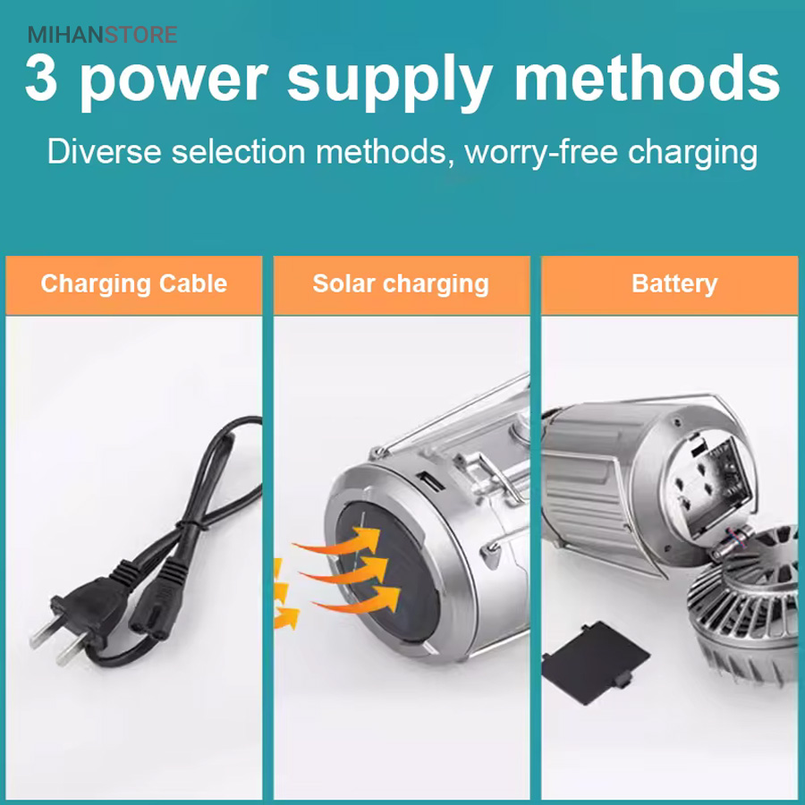 میهن استور - خرید پستی چراغ کمپینگ خورشیدی دارای پنکه و پاوربانک