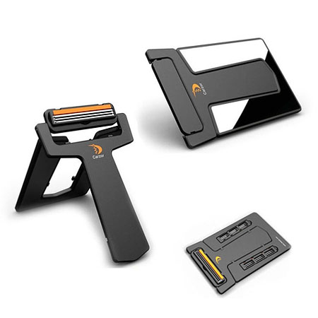 این ریش تراش طوری طراحی شده است که تنها به اندازه یک کارت اعتباری (عابر بانک) جا می گیرد و می توانید آن را به راحتی در داخل کیف پول خود جا داده و در هر مکانی از آن استفاده کنید. تیغه های این ریش تراش بسیار تیز بوده و به صورت سه تایی می باشد که این حالت مدت زمان اصلاح را کاهش می دهد، همچنین در این ریش تراش آینه ای برای مشاهده (قسمت در حال اصلاح) نیز گنجانده شده و برای آسودگی خاطر شما تیغه اضافی نیز در پشت آینه وجود دارد که در صورت کند شدن تیغه اصلی از آن نیز می توانید استفاده کنید. قسمت جالب این ریش تراش وجود خوشبو کننده (در کنار تیغه های این ریش تراش) برای معطر کردن صورت شما هنگام اصلاح است.