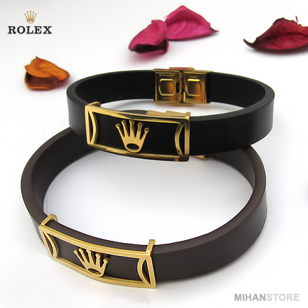 این دستبند در دو رنگ قهوه ای تیره و مشکی و نماد رولکس عرضه شده است.