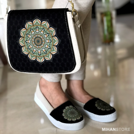 فرهنگ و تمدن هر کشوری نشان دهنده اصالت و قدمت آن است. امروزه مردم کشورهای غربی با چنگ و دندان پاسدار فرهنگ نه چندان قدمتدار خود هستند آنجا که ایران ما دارنده فرهنگی عمیق پر از نقش و نگار و خصوصیات اخلاقی ویژه است. این ست کیف و کفش علاوه بر جادار بودن کیف، و کفش فوق العاده راحت دارای نقش و نگاری است که برگرفته از فرهنگ ایرانی است. زیبایی این طرح نه تنها در ایران بلکه در تمام دنیا مورد پسند همگان است و زیبایی و جذابیت خاصی دارد که تحسین همگان را بر می انگیزد. کفش این ست در سایزبندی 37 الی 40 عرضه شده است که هنگام تکمیل فرم سفارش می توانید سایز مورد نظر را انتخاب کنید.
